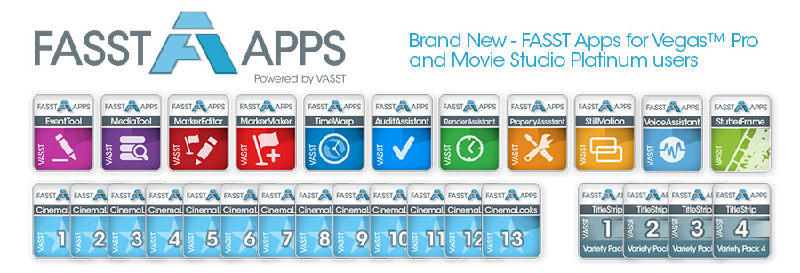 More than 20 new FASST Apps give Vegas and Movie Studio users unlimited potential to increase creativity and save time! At just $9.95 each, these productivity and creativity tools are an exceptional value. Find out why editors like you are raving about FASST Apps.