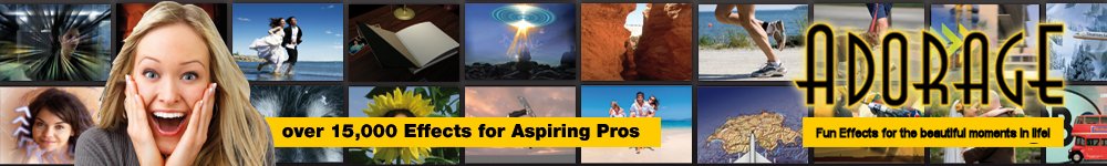 You don’t have to invest hours in designing, composing and rendering broadcast quality effects and different tools. All you have to do is to select the effect in a list inside of Adorage! It has never been so easy to produce broadcast and cinema effects!
